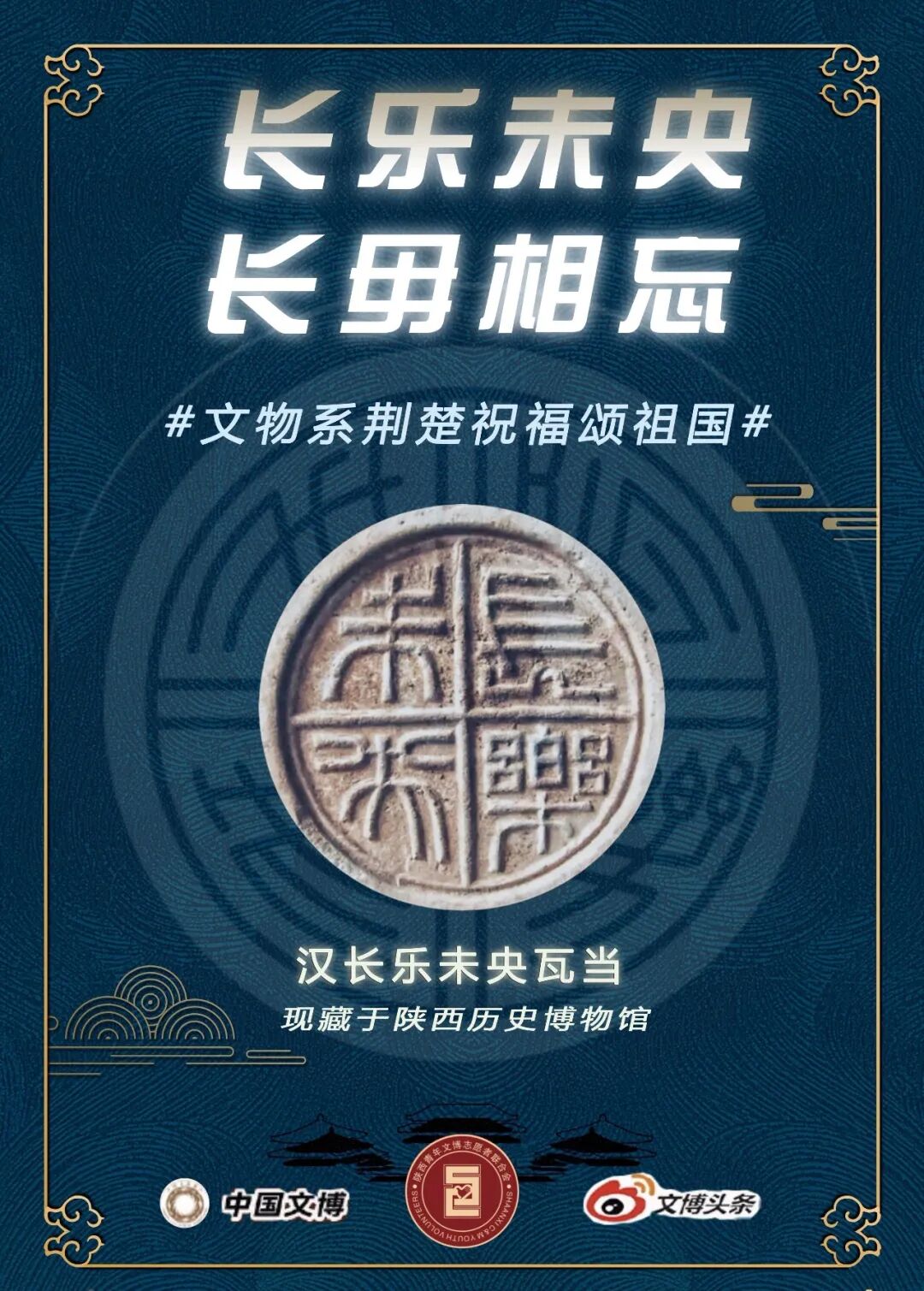 “长乐未央”是汉代常见的吉语之一。意为:天子与各地诸侯长和,则国能传之”千秋万岁”。西汉长安亦有“长乐宫”与“未央宫”。千年之后,虽地处长安,仍心系荆楚。愿以长安之名保佑长治久安,以秦砖汉瓦祈求长乐未央,愿中国千秋不衰,患难回忆长毋相忘。