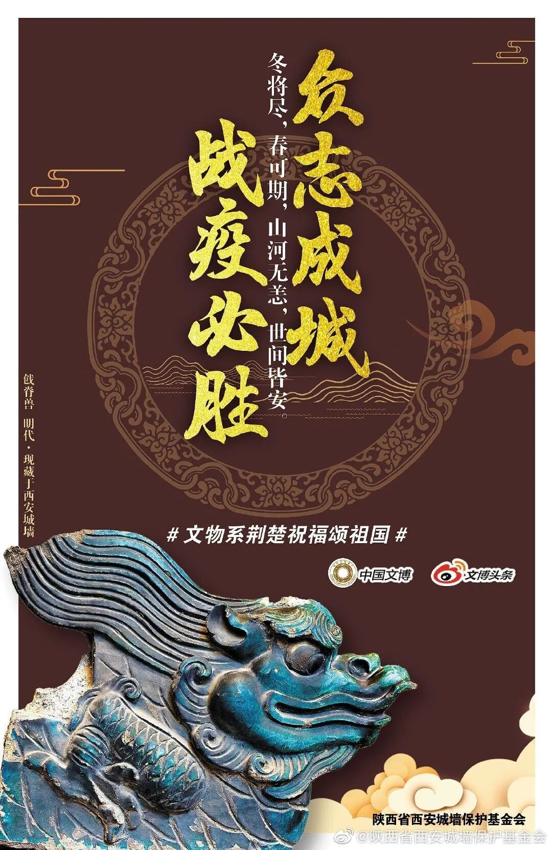文脉不绝,山河永乐。同心抗“疫”,共待春暖。祝福祖国,国泰民安、风调雨顺。