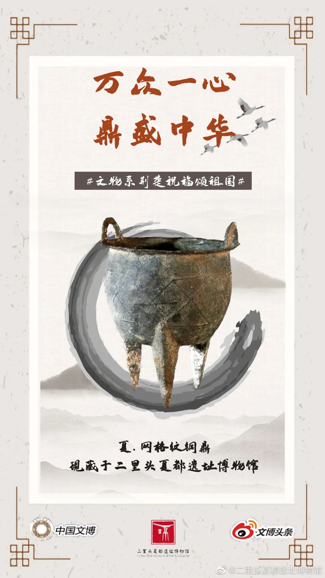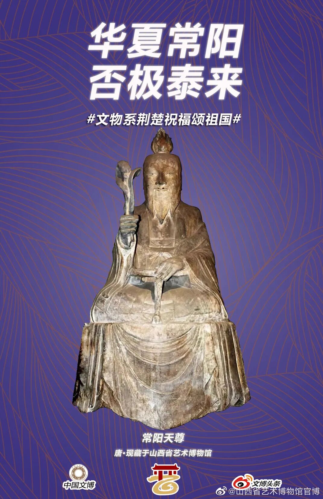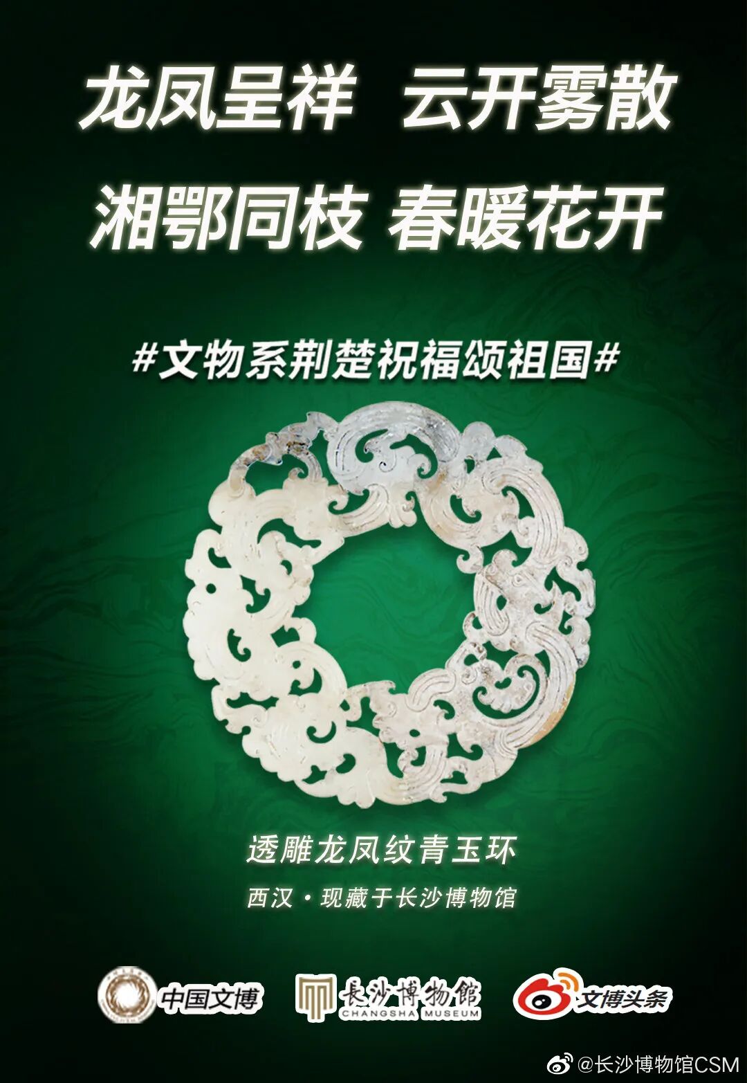 马踏飞燕驰援武汉的“铜奔马”、同舟共济的“清雕白玉船”,战疫伏魔的“青铜宝剑”,鼎力相助的“西周大克鼎”......2020年年初,新冠肺炎疫情肆虐全国之际,微博联合@中国文博 及海内外100多家文博机构组织开展“文物系荆楚 祝福颂祖国”祝福接力活动,各地博物馆纷纷拿出镇馆之宝,制作成精美海报,中华瑰宝接力鼓劲,用五千年文化底蕴为抗疫行动汇聚精神力量,通过丰富的文物展示传递美好的祝福和必胜的信念。