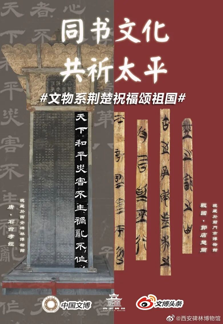 石经竹书,同载文化,秦楚一心,共祈太平!孝经章第八载,“天下和平,灾害不生,祸乱不作”,这是古之圣贤对苍生的终极关怀,对治世的永恒追求。